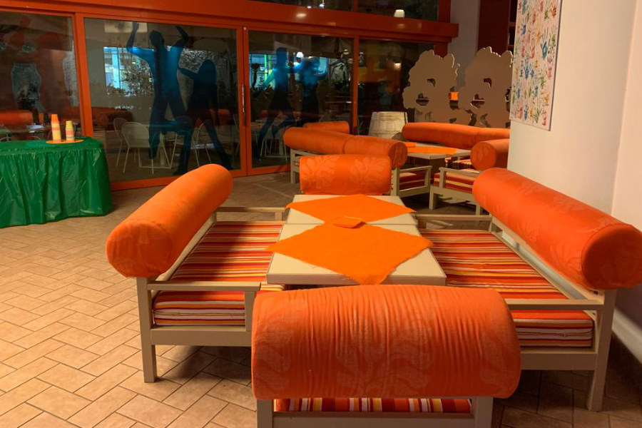 Un grande spazio allegro e colorato per un evento più convenzionale.